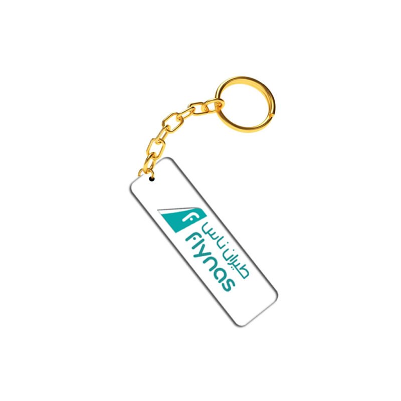 Remove before flight tag, long size 2.5 cm wide and 45cm long, golden chrome key fob printed both sides