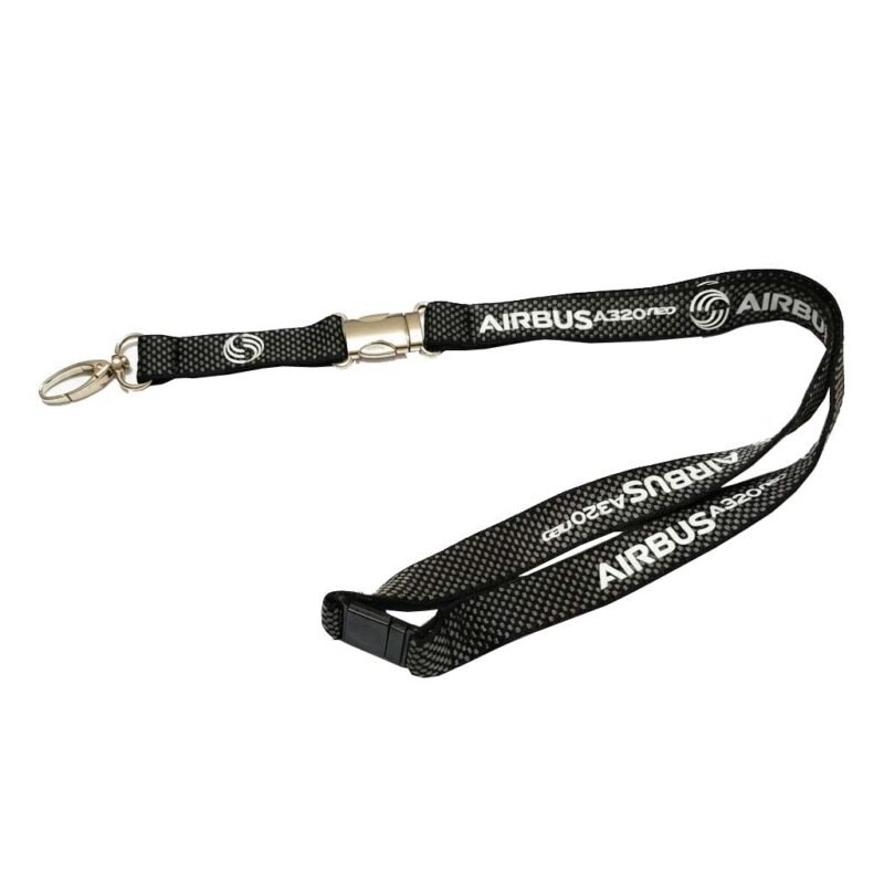 Airbus A320 carbon fiber lanyard, black, metal buckle
