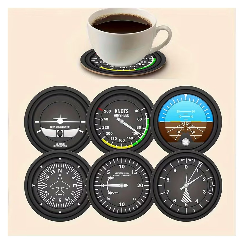 Aviation-Themed Airplane Cockpit Cup Coasters – Wood Flight Instrument Suitable for Home, Restaurant,- Ideal Gift for Pilots & Aviation Enthusiasts (Hand Washable), 2D Flat