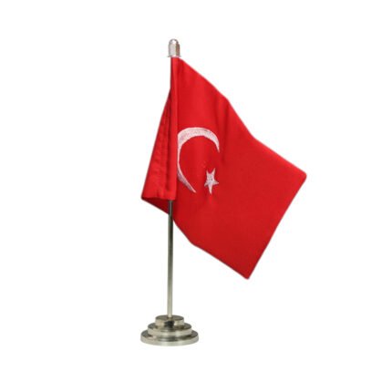 Turkish table flag, embroidered, executive Embroidered, executive Material: Stainless steel and metal Flag size: 5×8 inch Total height with base: