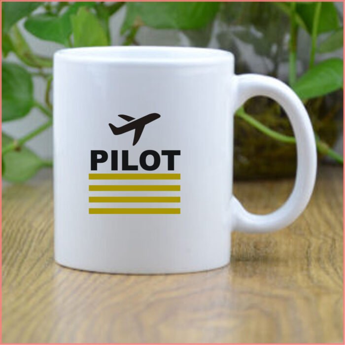 Pilot mug with 4 strips and airplane, aviation gift