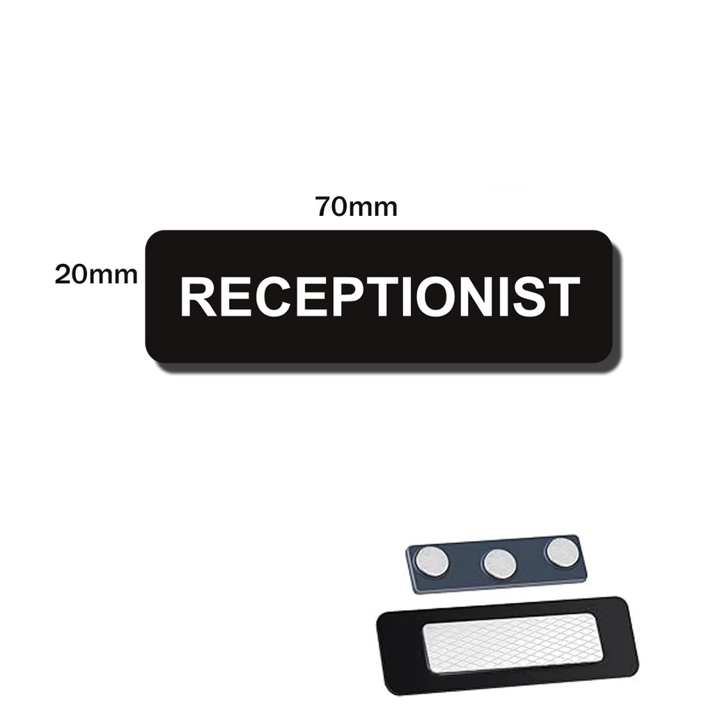Receptionist name plate, 70x20mm, epoxy and magnet holder